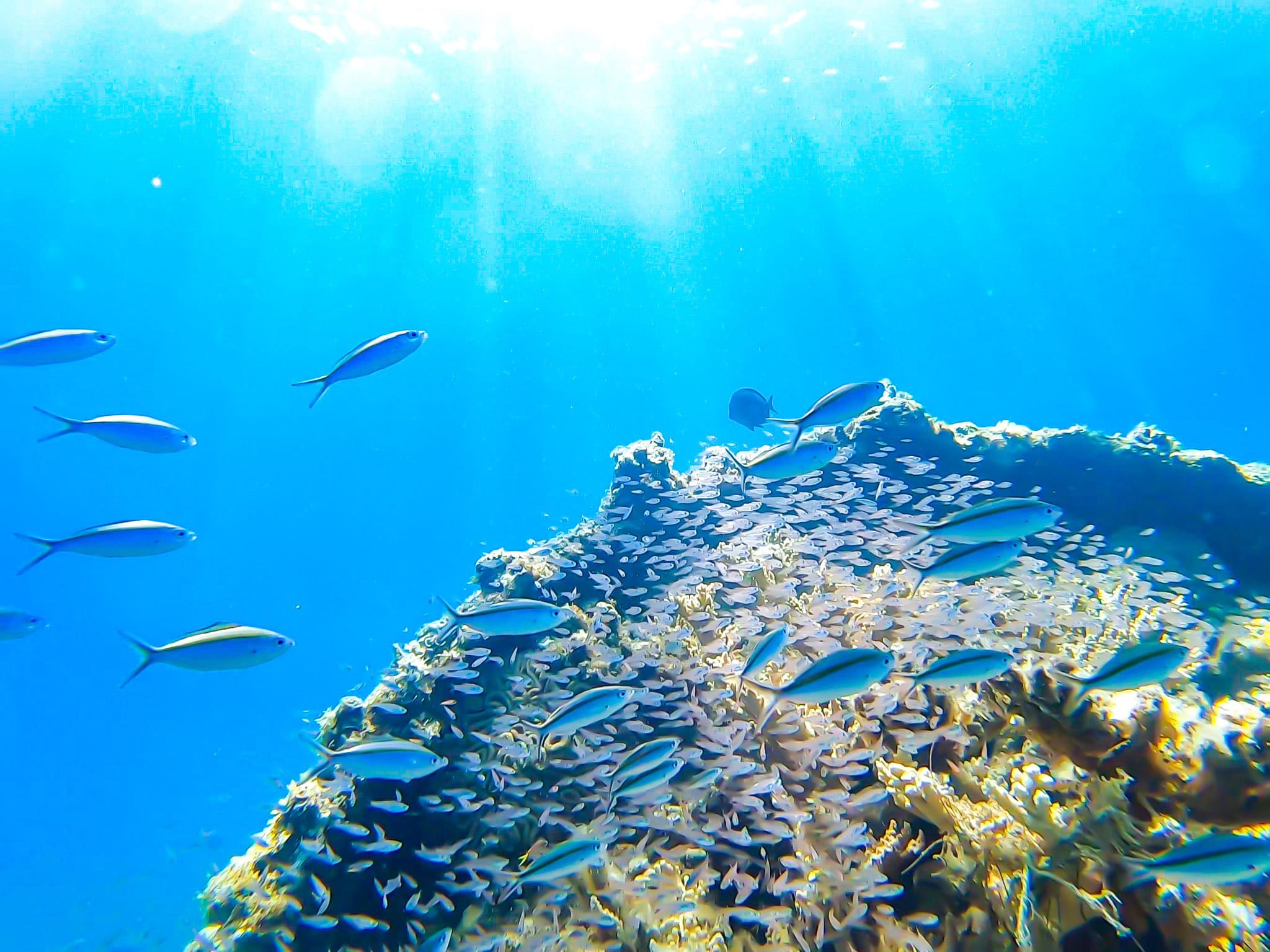 どこまでも濃く深く透き通り、カラフルなサンゴ礁や熱帯魚、大型の魚の回遊など、ダイナミックな光景が楽しめる小笠原の海では、ホエールウオッチングやドルフィンスイムなど、様々な海のアクティビティが楽しめます。